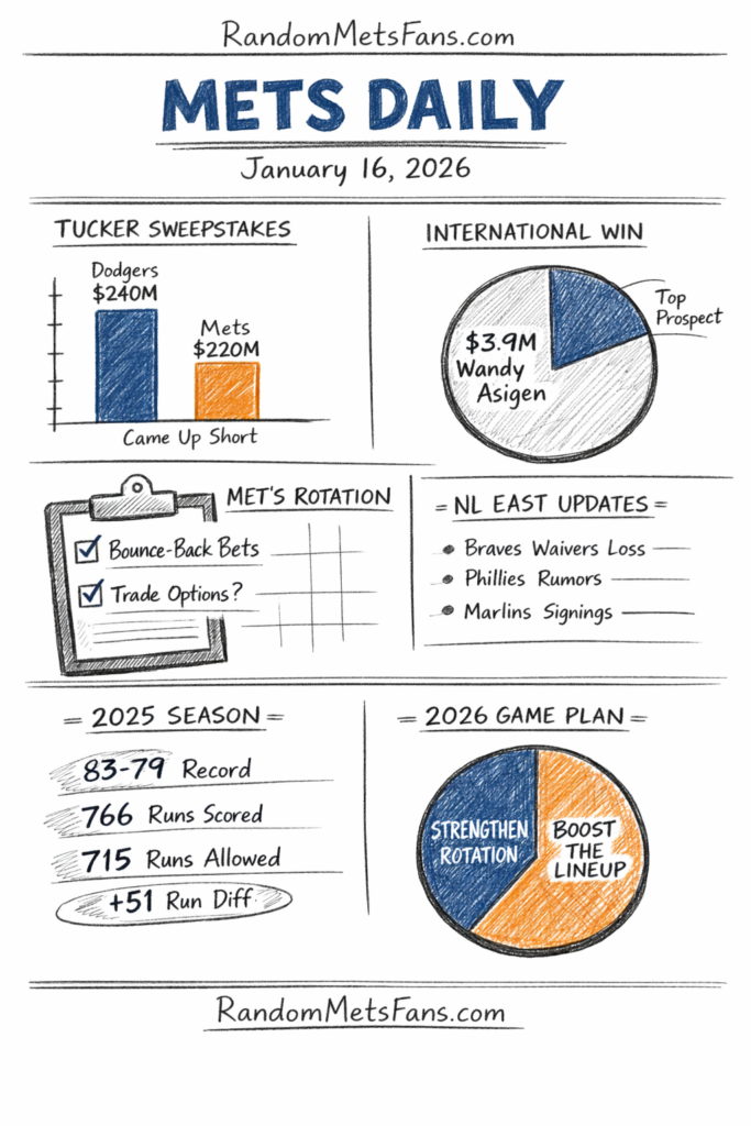- 2025 Mets baseline: 83-79, 766 runs scored, 715 runs allowed, +51 run differential. That profile screams “solid team that still managed to annoy you 2-3 nights a week.”