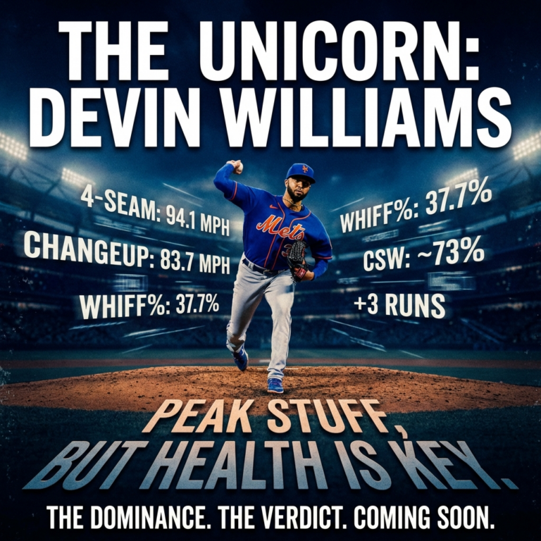 - Williams’s stuff = surgery on hitters’ eyes. Two pitches, 94+ mph, 97% spin—every miss is a K. He’s elite, if healthy.