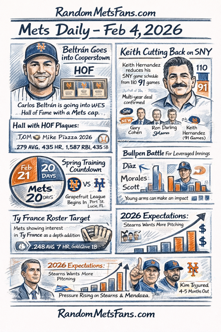 - MLBTR front-office heat meter: Carlos Mendoza is entering the final guaranteed year of his deal (with a club option beyond), which means the Mets’ 2026 expectations are loud and expensive.