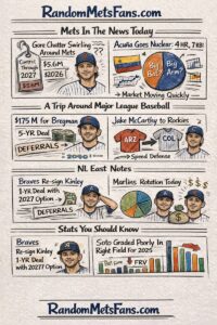 - The Mets are stuck in the “big bat / big arm” aisle. The market’s moving around them, so every day without a decisive add starts to feel less like patience and more like procrastination.