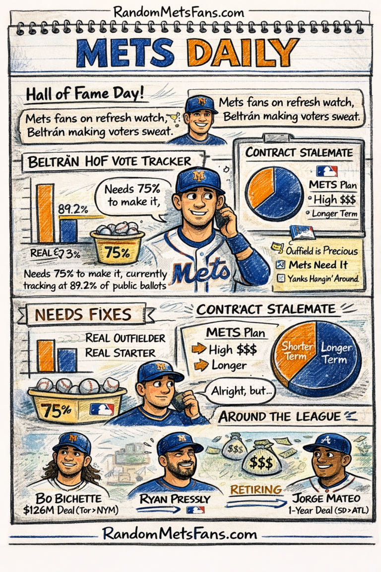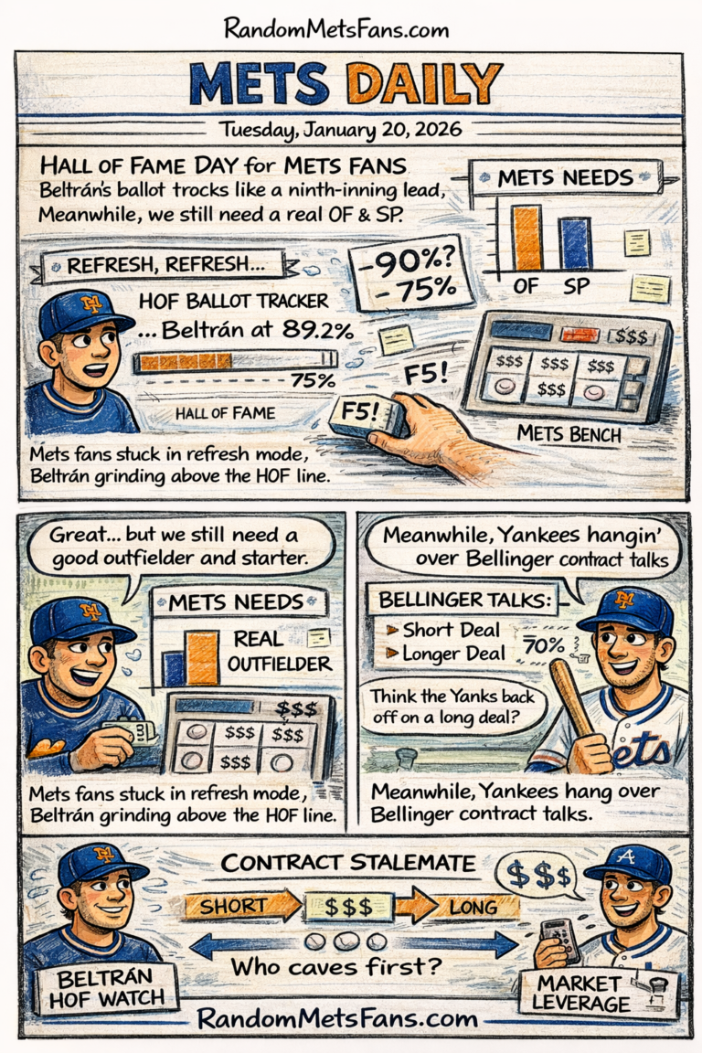 - Beltrán watch is on. Hall of Fame results drop tonight, and Carlos Beltrán is sitting in that “do not jinx this” zone for Mets fans who still remember 2006 like it was a recurring nightmare.