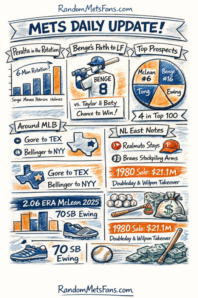 • Rotation math is getting tight. Peralta joins a group that includes Kodai Senga, Sean Manaea, David Peterson, Clay Holmes, and Nolan McLean, with real pressure to decide whether this becomes a true six-man or someone gets bumped into a relief role.