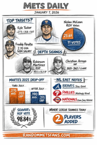 - Prospect pulse: Nolan McLean keeps popping up in award chatter. He reportedly pulled 11 Rookie of the Year votes (25.6%) in a recent tally. Even if you discount the “poll energy,” it’s a reminder the Mets need young, cheap production somewhere.