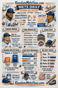 This opener matters because it shows what kind of team the Mets think they are. Soto is here. Lindor is still the engine. Peralta is now the lead dog on the mound. Benge forced his way into the picture. The roster is not screaming “let’s ease into the season.” It’s screaming “deal with us.”