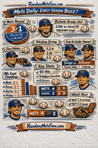 The early story is simple: this team looks deeper, faster, and more resilient than the version that spent too much of last year feeling like it was waiting for something to go wrong. Through four games, the Mets have gotten contributions from stars, newcomers, and kids, and Monday’s win was the kind of road game good teams bank without throwing a parade for themselves.