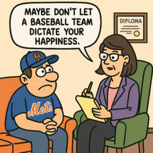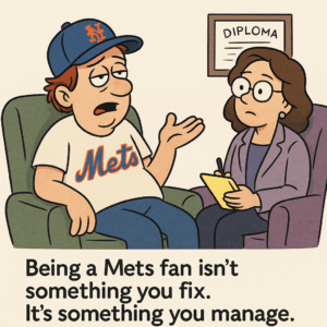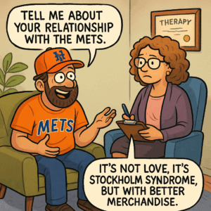 When your therapist says, “Tell me about your relationship with the Mets,” you’ll pause. You’ll laugh. Then you’ll realize she’s not joking.
