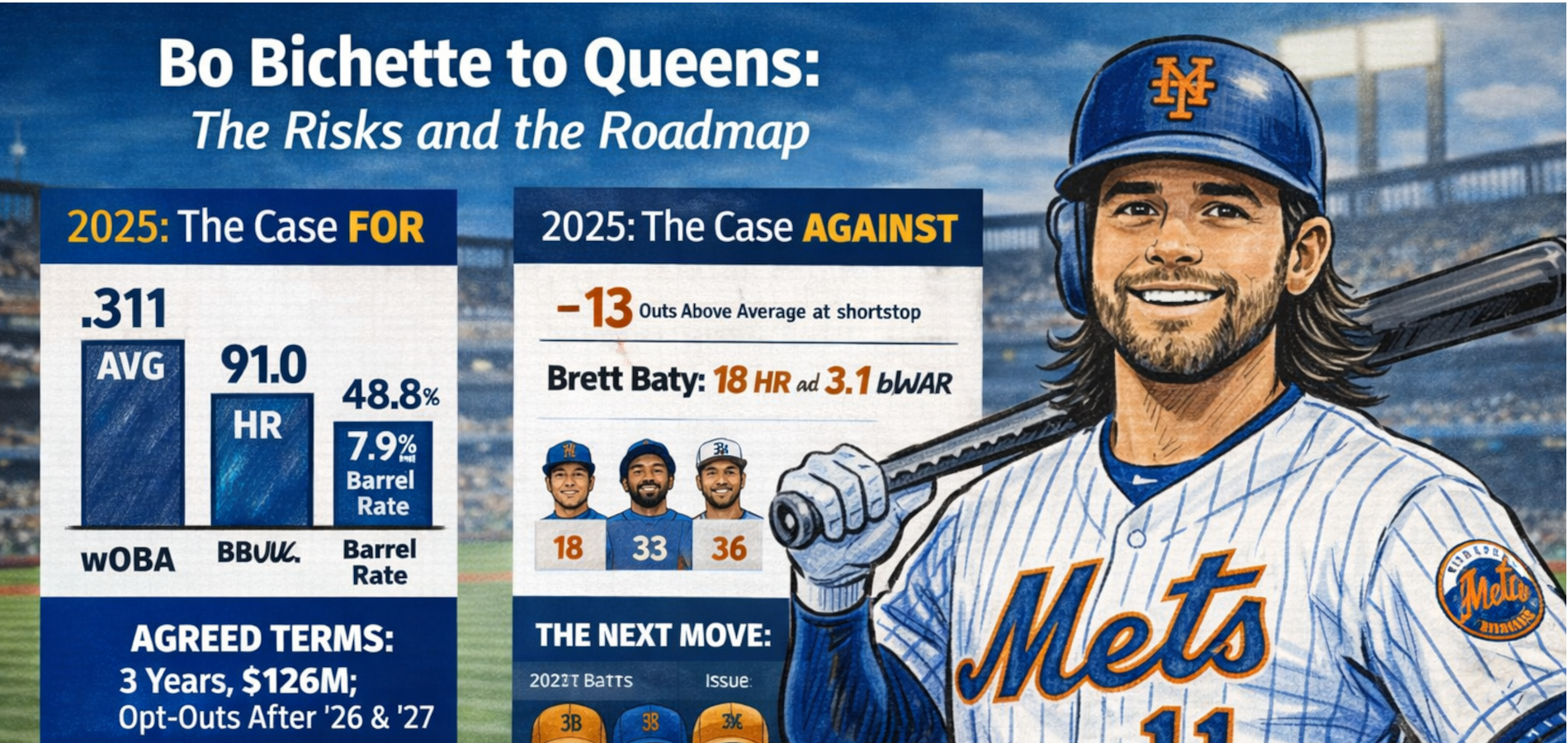 The Bo Bichette Deal Is a Flex, a Gamble, and a Deadline Timer All at OnceBo Bichette to the Mets is a legit offensive upgrade with a built-in deadline, and the position switch is the risk that decides everything. The opt-outs force urgency, the draft-pick tax demands payoff, and…