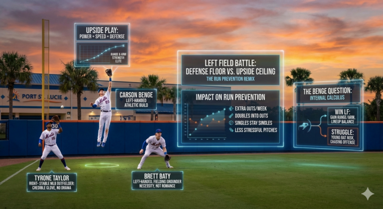 The Mets should want Benge to win the job, but only if the at-bats look real. Defense plays. Speed plays. If he shows he can compete against big-league pitching, the upgrade in run prevention is immediate.