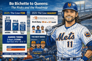 The Bo Bichette signing is a good move, and it is also a move that demands follow-through. Since the bat is real, the prime-age timing fits, and the short term structure is exactly the kind of risk the Mets should take. The defense and positional transition are real enough to turn this into a problem if the front office does not immediately solve the outfield and stop asking the roster to do gymnastics every week.
