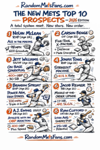 Mets fans, brace yourselves: the farm system you thought you knew has been turned on its head. After a transformative 2025 season, the Mets have recalibrated their Top 25 prospects list, and it’s loaded with new names, breakout stars, and a few big surprises. This isn’t a timid update or generic puff piece. It’s an unapologetic re-ranking that shows how far the Mets’ player development has come (and who’s been left in the dust). I’m here for it, and I have opinions. Let’s dive into the new Top 10 in detail, then hit quick notes on prospects 11–25. No sugarcoating, no clichés, just a confident, first-hand take on the Mets’ future.