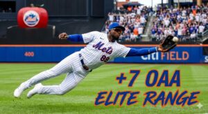 What does +7 OAA look like in real life? It means Robert covers serious ground in the outfield, he gets to balls that many center fielders simply can’t reach. Statcast data shows he is particularly adept at tracking down balls in the gaps to his left and right. Those are the toughest plays for a center fielder, often resulting in doubles or triples if not caught. In 2025, Robert made seven catches on balls that had a ≤50% catch probability (essentially “unlikely” or challenging plays). Only 15 outfielders in MLB made that many tough catches, underscoring his ability to make highlight-reel plays to save runs. Mets president David Stearns explicitly targeted better up-the-middle defense this offseason, and Robert is now the centerpiece of that plan. When you find a very good defensive center fielder who also has 30-homer upside, you take it.