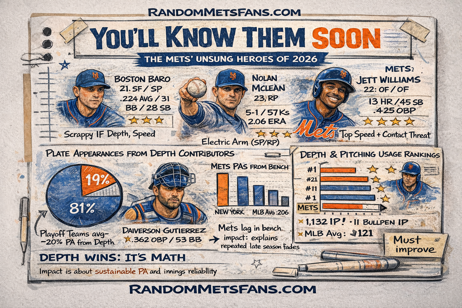 Mets seasons are never decided by the names you buy jerseys for in April, they’re decided by the guys you barely notice until August, the ones who suddenly show up in box scores, leverage spots, and postgame quotes like they’ve been there the whole time. Every era that actually mattered had them, the glue guys, the roster fillers who quietly stopped innings from unraveling and turned “well, that sucked” losses into wins that didn’t feel earned but absolutely counted. Heading into 2026, that tier is forming again, quietly, almost disrespectfully under the radar, and if history has taught Mets fans anything it’s this: by the time you’re arguing about these players on social media, it’s already too late to pretend they don’t matter.
