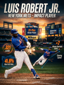 You get Luis Robert Jr., which is either going to look like a brilliant, aggressive move by a front office that knows exactly what it’s doing, or the kind of gamble that has grown men in Queens pacing around their kitchens at 11:40 p.m. talking to the television like it owes them money. That’s the deal with Robert. He is not some tidy little “solid contributor” type, he’s not baseball beige, he’s impact. Loud, imperfect, explosive impact. The Mets did not bring him here to blend into the wallpaper., they brought him here to change the shape of games, and if he stays on the field, he absolutely can.